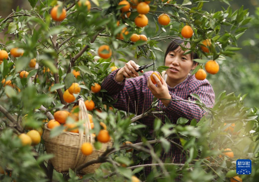11月7日,貴州省赤水市文華街道雙龍社區的村民在采摘柑橘。