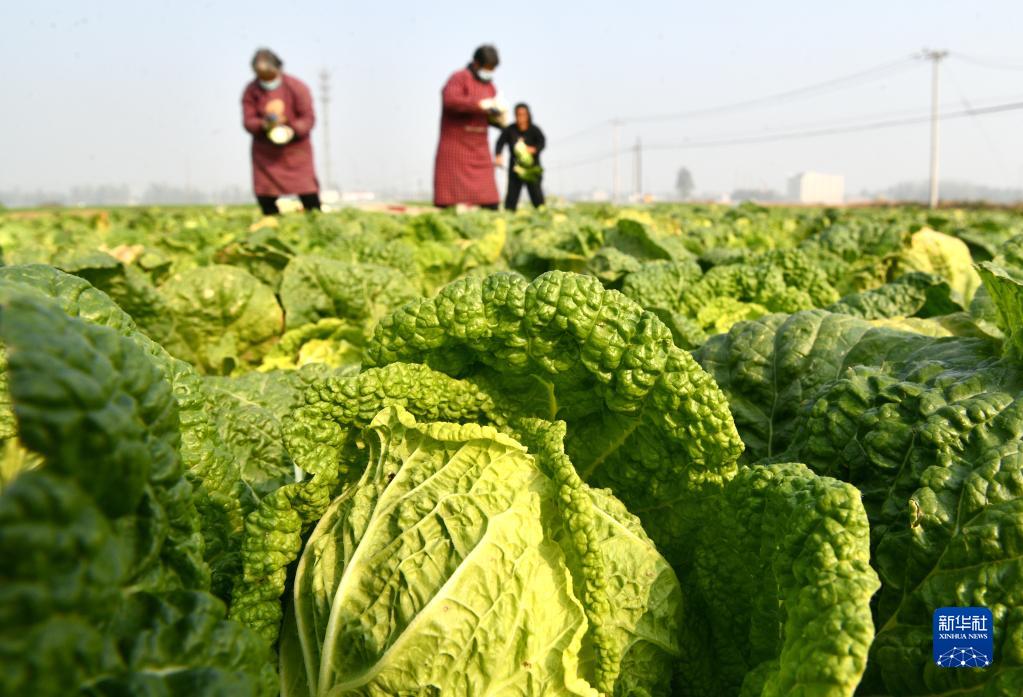 11月7日,河北省石家莊市欒城區西營(yíng)鄉吳郭村,菜農在田里收獲白菜。