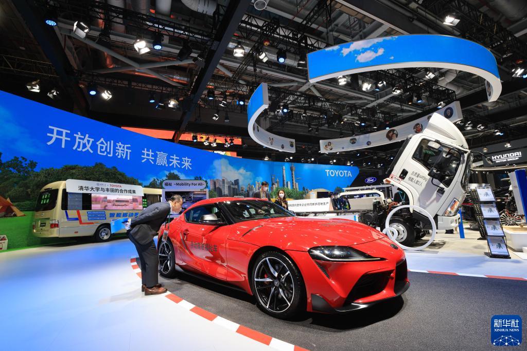 11月6日,參觀(guān)者在第五屆進(jìn)博會(huì )豐田展臺觀(guān)看一款手動(dòng)駕駛車(chē)。