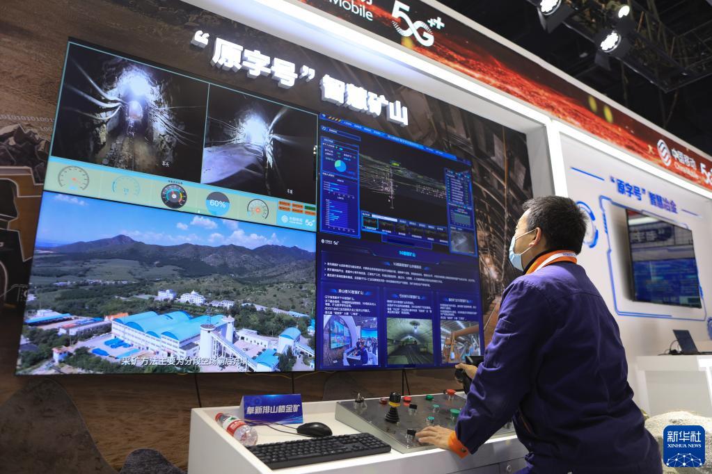 11月7日,參會(huì )企業(yè)工作人員展示5G賦能智慧礦山項目。