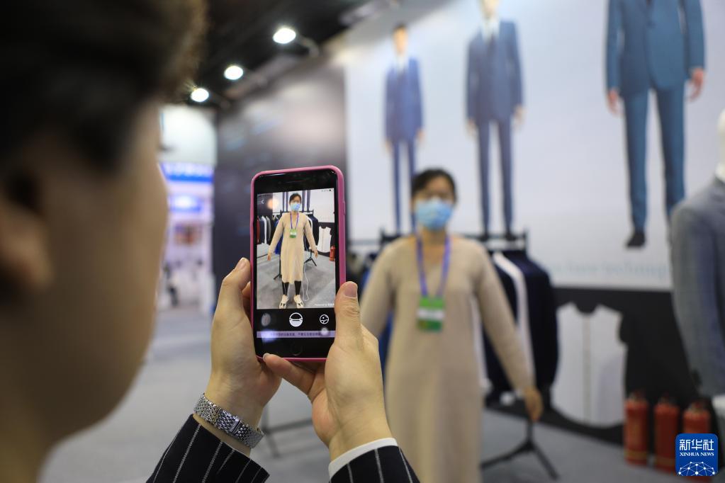11月7日,參會(huì )企業(yè)工作人員演示服裝定制工業(yè)互聯(lián)網(wǎng)平臺。