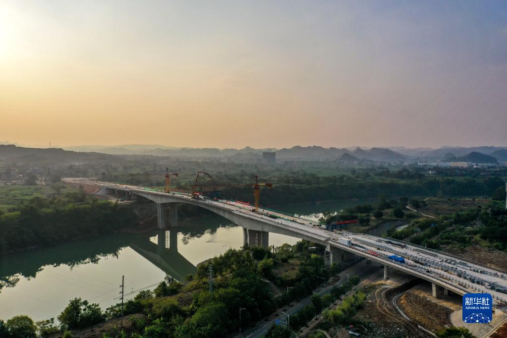 當日,隨著(zhù)最后一?;炷翝仓瓿?,由中鐵五局承建的廣西崇左麗江大橋合龍。麗江大橋全長(cháng)521米,主橋最大跨度160米。大橋建成通車(chē)后,在改善當地居民出行條件的同時(shí),對廣西自貿區崇左片區的經(jīng)濟發(fā)展將發(fā)揮重要作用。