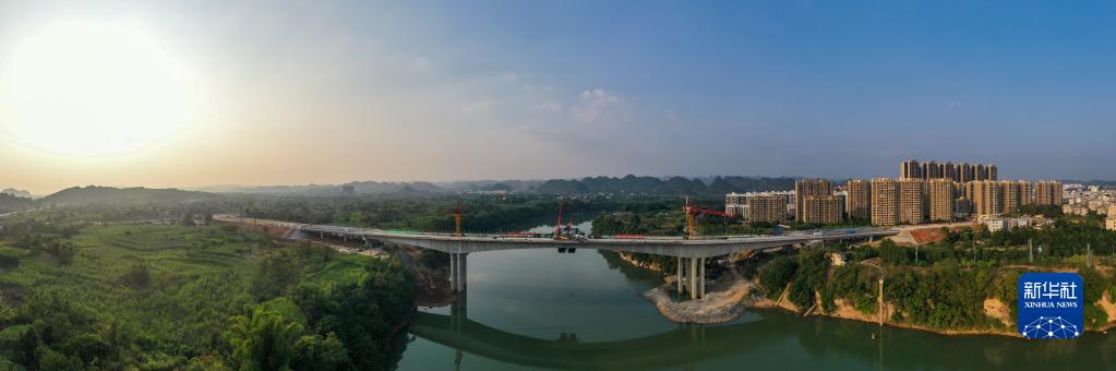 當日,隨著(zhù)最后一?;炷翝仓瓿?,由中鐵五局承建的廣西崇左麗江大橋合龍。麗江大橋全長(cháng)521米,主橋最大跨度160米。大橋建成通車(chē)后,在改善當地居民出行條件的同時(shí),對廣西自貿區崇左片區的經(jīng)濟發(fā)展將發(fā)揮重要作用。