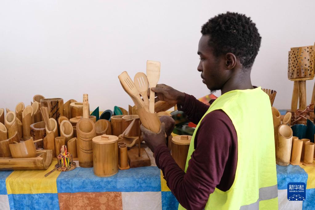 10月26日,在烏干達首都坎帕拉,烏干達竹子協(xié)會(huì )的工作人員展示竹制器具。