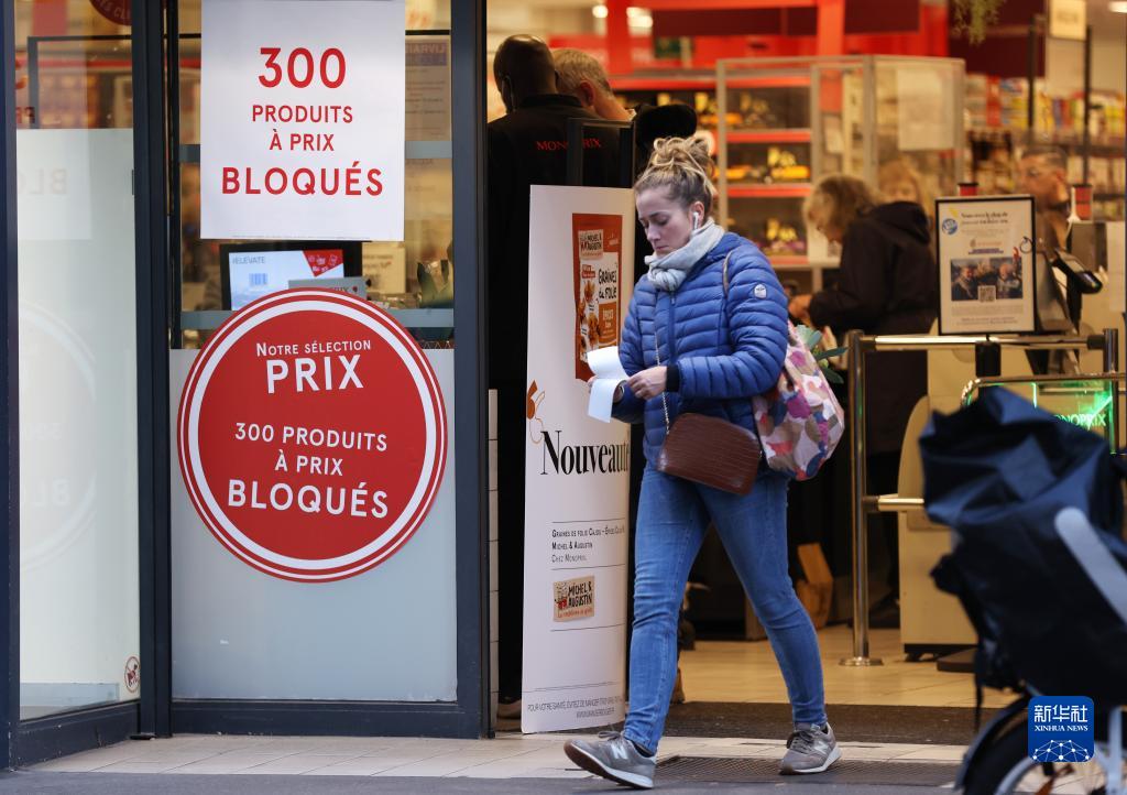 11月7日,在法國巴黎一家貼有“我們精選300種限價(jià)商品”字樣的超市外,一名女子檢查手里的購物小票。