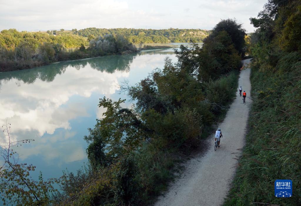 人們在意大利納扎諾泰韋雷-法爾法自然保護區騎行(11月3日攝)。