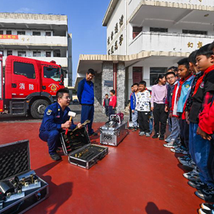 11月8日,東林鎮消防隊員在給東林小學(xué)的學(xué)生們普及消防安全知識。