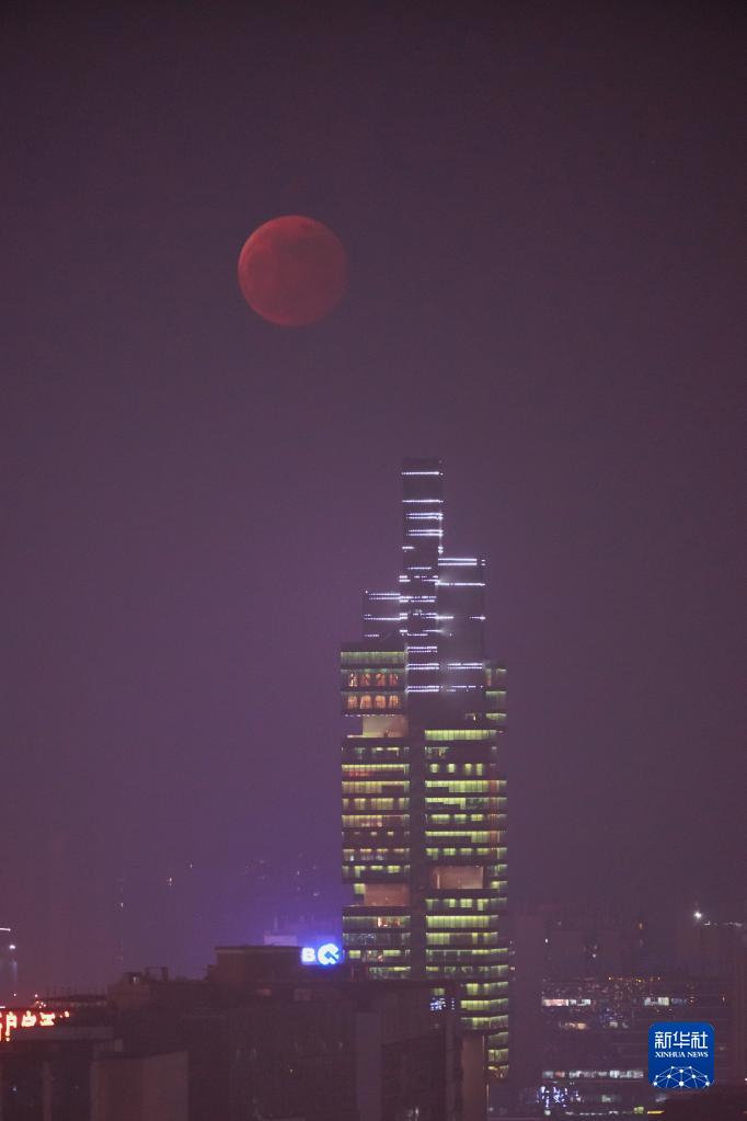這是11月8日在貴州省貴陽(yáng)市拍攝的月食景象(多重曝光拍攝)。