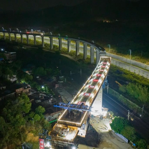 11月8日,由中鐵十一局承建的清遠磁浮旅游專(zhuān)線(xiàn)長(cháng)隆特大橋跨京廣鐵路連續梁成功實(shí)現轉體。清遠磁浮旅游專(zhuān)線(xiàn)是廣東首條中低速磁浮線(xiàn),項目首期全長(cháng)8.014公里。