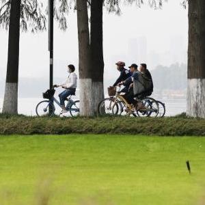 11月5日,市民在湖北武漢東湖風(fēng)景區騎行。