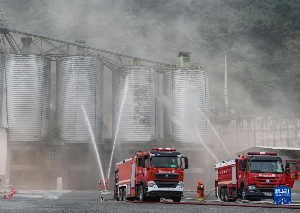 11月9日,在四川省宜賓市敘州區,演練人員進(jìn)行消防滅火工作。