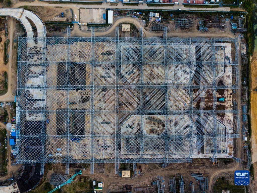 這是11月8日拍攝的柬埔寨新金邊國際機場(chǎng)項目施工現場(chǎng)(無(wú)人機拍攝)。