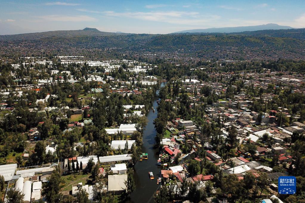 這是在墨西哥首都墨西哥城霍奇米爾科拍攝的運河(航拍照片,2020年10月23日攝)。