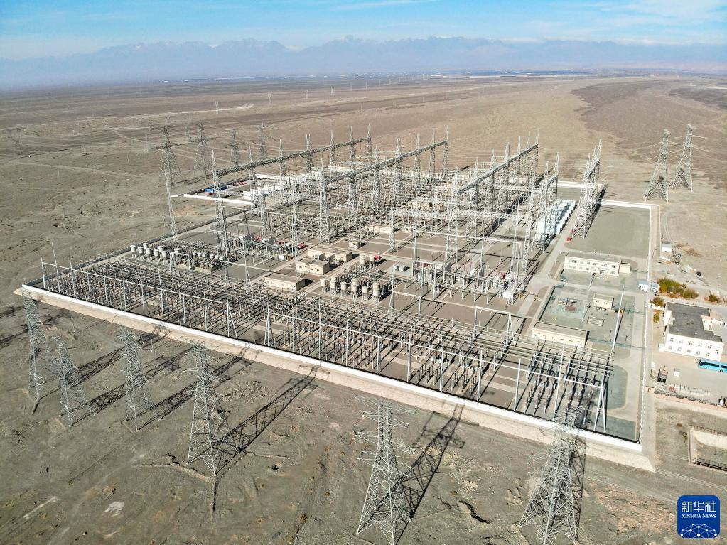 這是11月9日拍攝的新疆哈密至甘肅敦煌750千伏輸變電工程哈密變電站(無(wú)人機照片)。