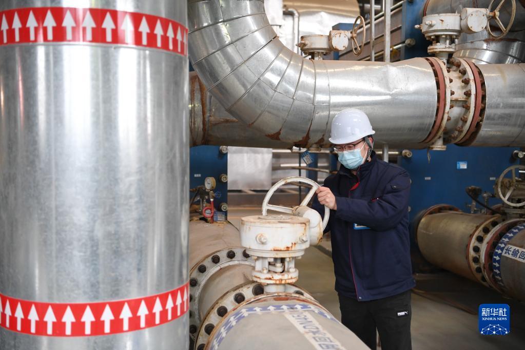 11月10日,在石家莊市一家供熱企業(yè),工作人員在運行車(chē)間內檢查供暖設備。