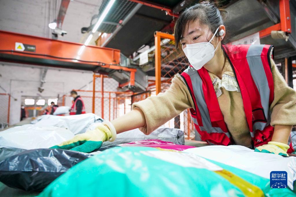 11月9日,河北省唐山市開(kāi)平區一家快遞公司的工作人員在分揀快遞。