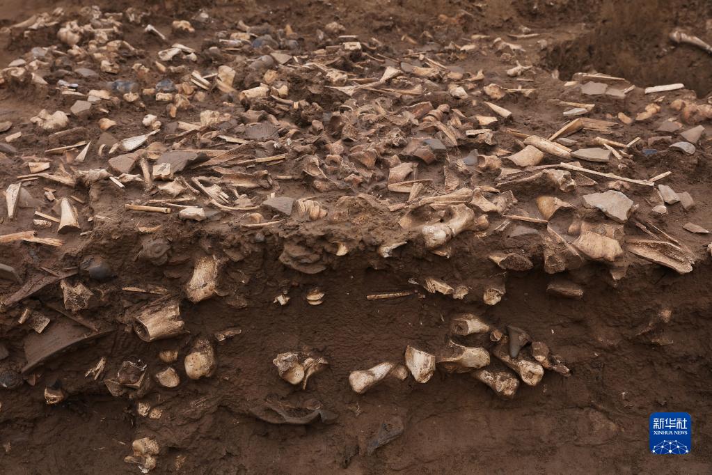 洹北商城制骨作坊骨料坑H32局部堆積情況(資料照片)。