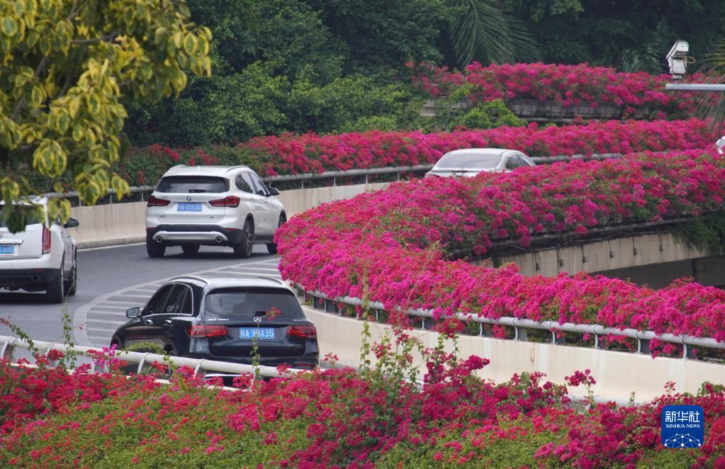 這是11月10日在廣西南寧拍攝的一座鮮花盛開(kāi)的立交橋。