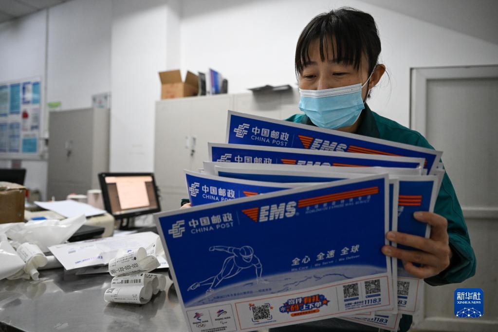 11月7日,在中國郵政集團有限公司天津市和平區分公司貴州路速遞營(yíng)業(yè)部,劉婷為已攬收快件打印快遞面單信息。