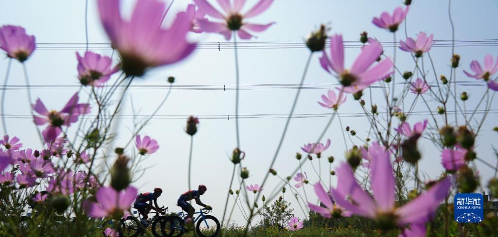 環(huán)鄱陽(yáng)湖國際自行車(chē)賽在南昌市高新區鄱陽(yáng)湖畔舉行,自行車(chē)選手在騎行中(2019年9月28日攝)。