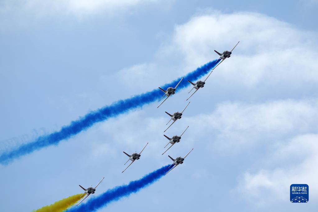 11月11日,空軍航空大學(xué)“紅鷹”飛行表演隊在第十四屆中國航展上進(jìn)行飛行表演。