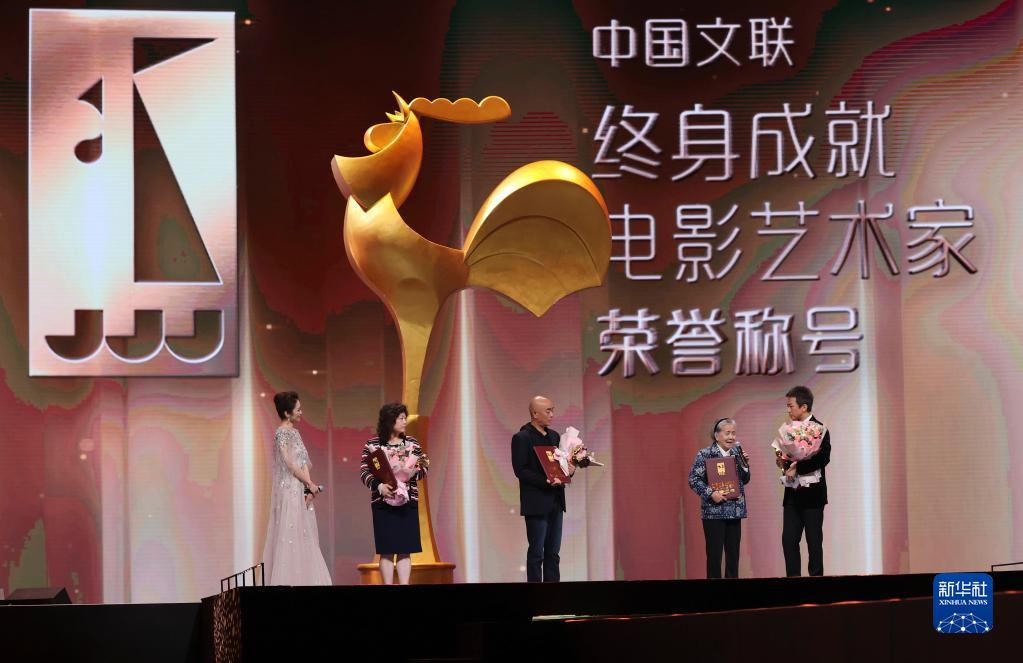 11月12日,王玉梅、黃蜀芹、王好為獲中國文聯(lián)終身成就電影藝術(shù)家榮譽(yù)稱(chēng)號。這是王好為(右二)在頒獎儀式上發(fā)表獲獎感言。