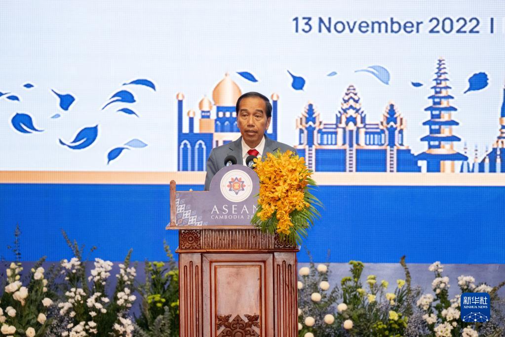 11月13日,印度尼西亞總統佐科在柬埔寨首都金邊舉行的閉幕式上致辭。