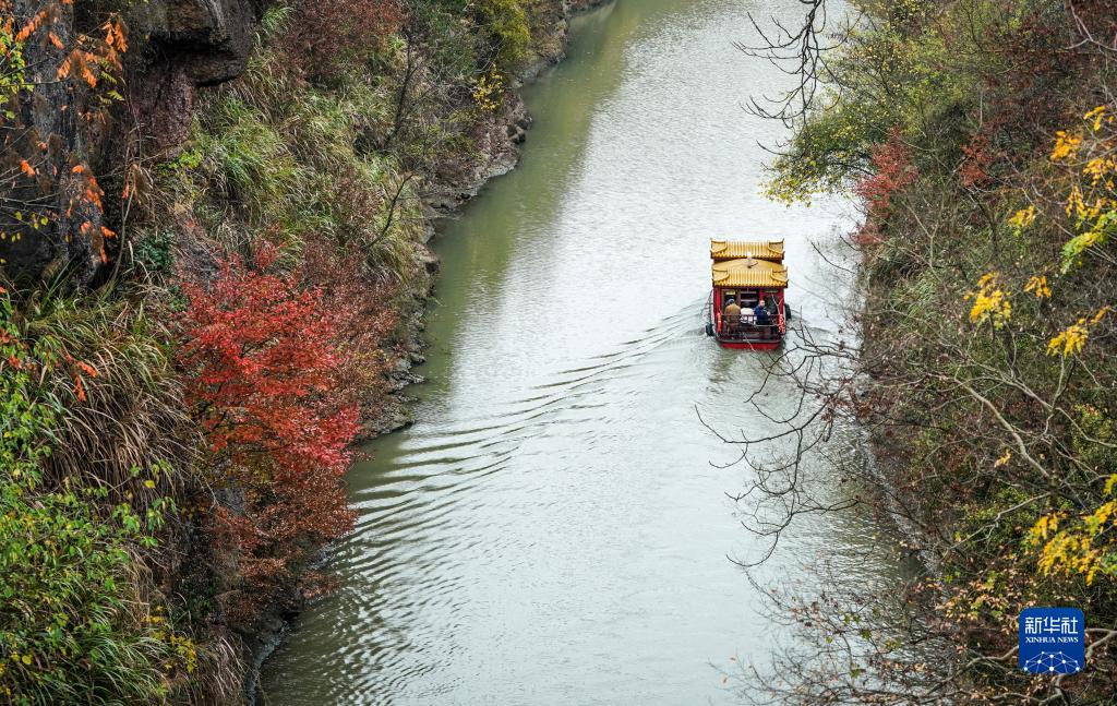 初冬時(shí)節,位于南京市溧水區的胭脂河兩岸奇石怪巖,色彩斑斕。新華社記者 楊磊 攝