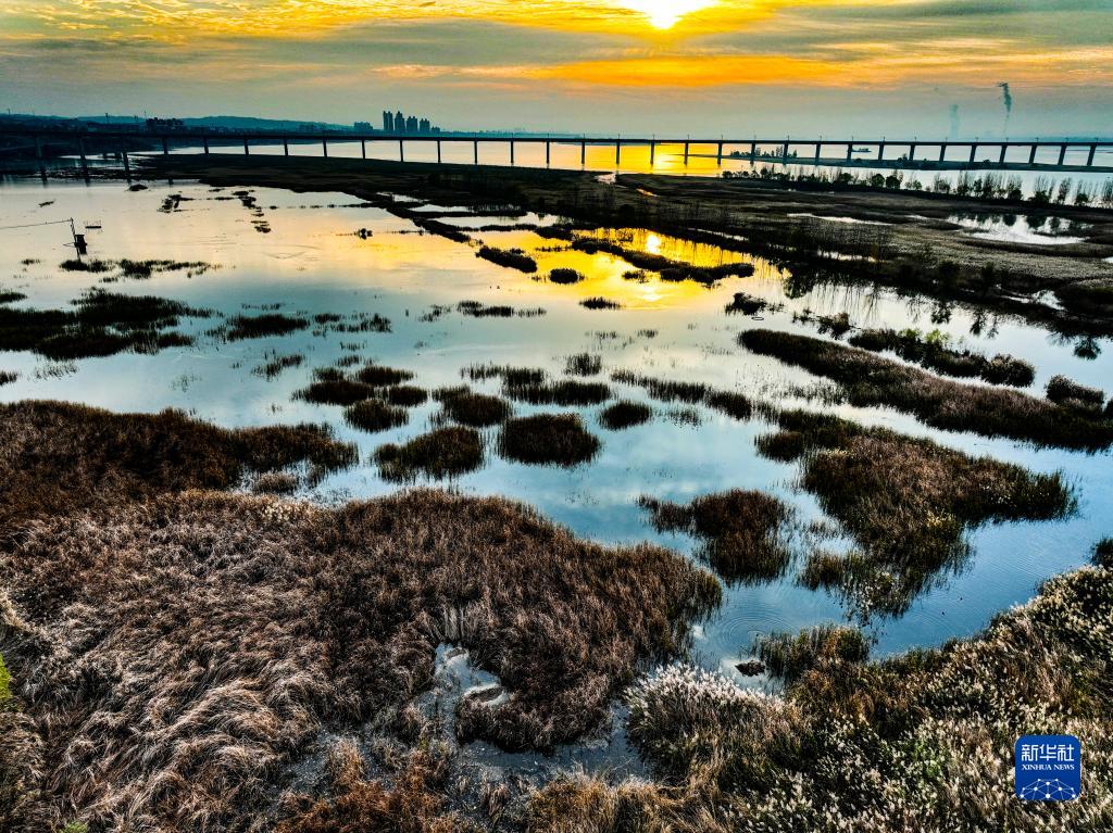 11月14日拍攝的河南黃河濕地國家級自然保護區濟源段景色(無(wú)人機照片)。