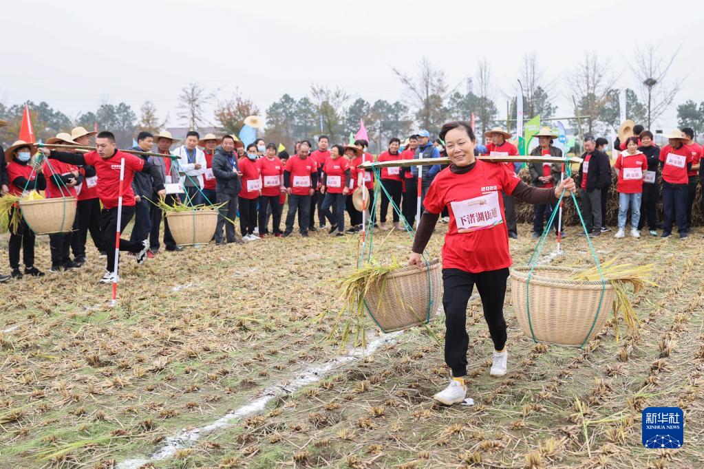11月15日,在德清縣舉辦的美好家園運動(dòng)會(huì )暨新安鎮稻田爭霸賽上,村民參加挑稻谷接力賽。