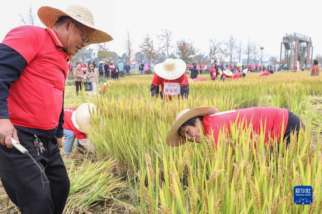 11月15日,在德清縣舉辦的美好家園運動(dòng)會(huì )暨新安鎮稻田爭霸賽上,村民參加割稻比賽。