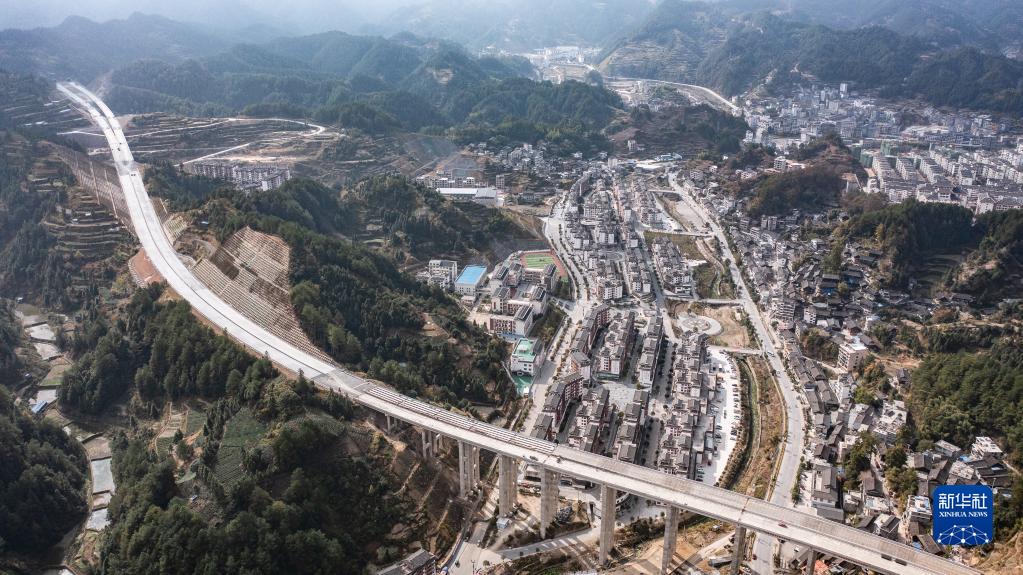 建設中的雷榕高速雷山至大塘路段(無(wú)人機照片,11月15日攝)。
