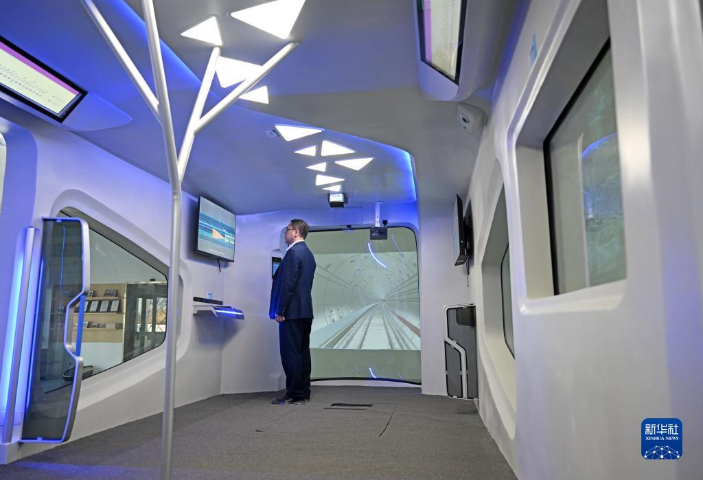 11月15日,在位于天津市武清區的交控技術(shù)裝備有限公司,工作人員在體驗無(wú)人駕駛車(chē)廂。