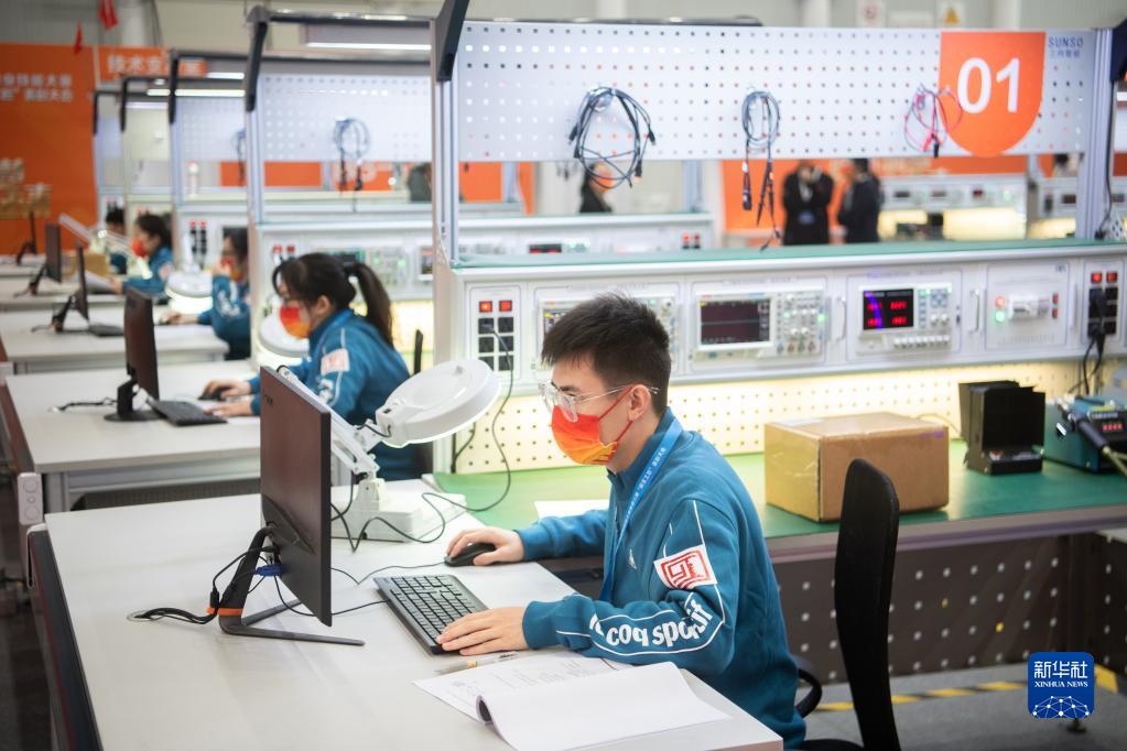 11月17日,參賽選手在電子技術(shù)項目比賽中。