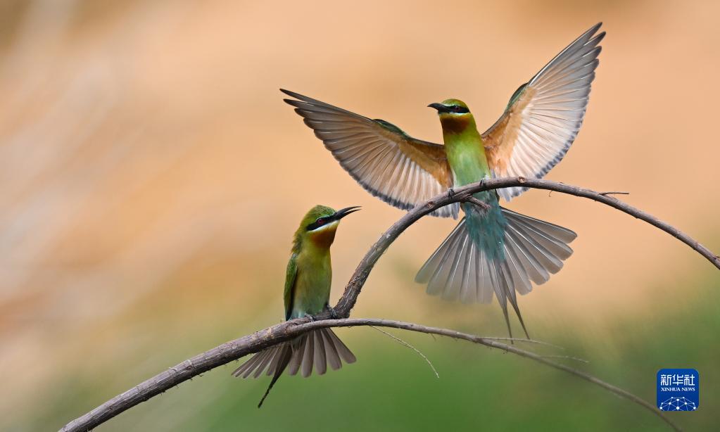 這是在五源河國家濕地公園拍攝的栗喉蜂虎(2022年4月16日攝)。