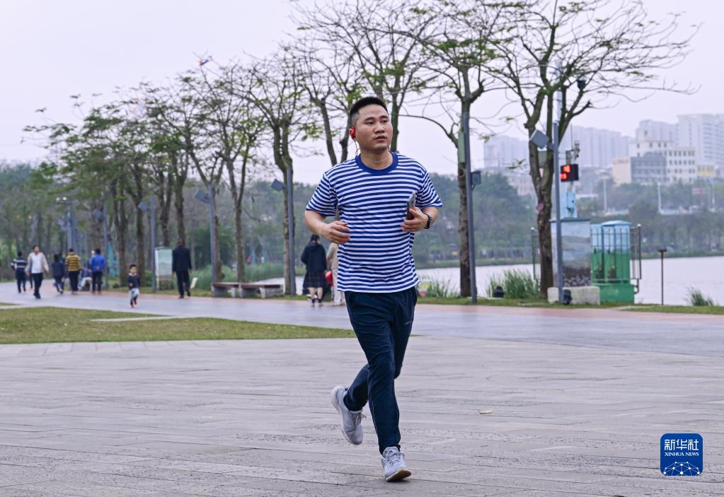 市民在美舍河國家濕地公園跑步(2022年1月9日攝)。