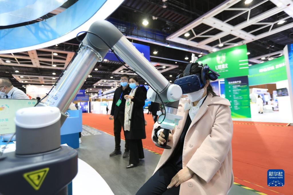 11月18日,人們在洽談會(huì )期間舉行的“綠色智造產(chǎn)業(yè)產(chǎn)品展”上參觀(guān)體驗康復機器人。