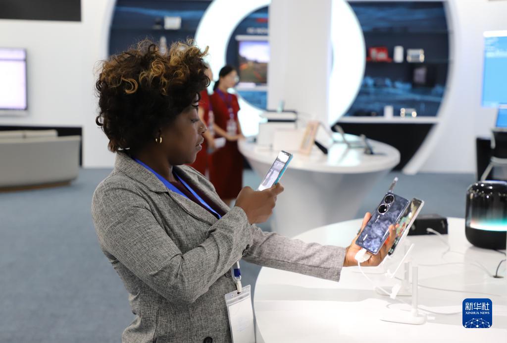 11月14日,在安哥拉羅安達的華為安哥拉科技園區,到訪(fǎng)嘉賓拍攝華為手機產(chǎn)品。