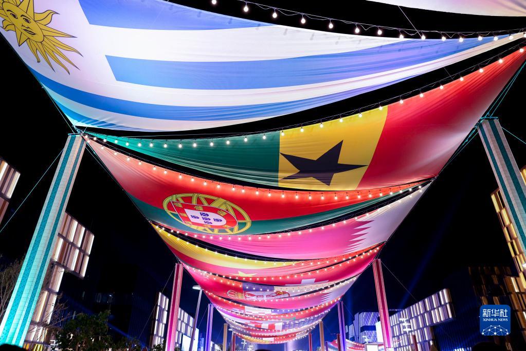 這是11月17日拍攝的盧塞爾大道上的各參賽國國旗。