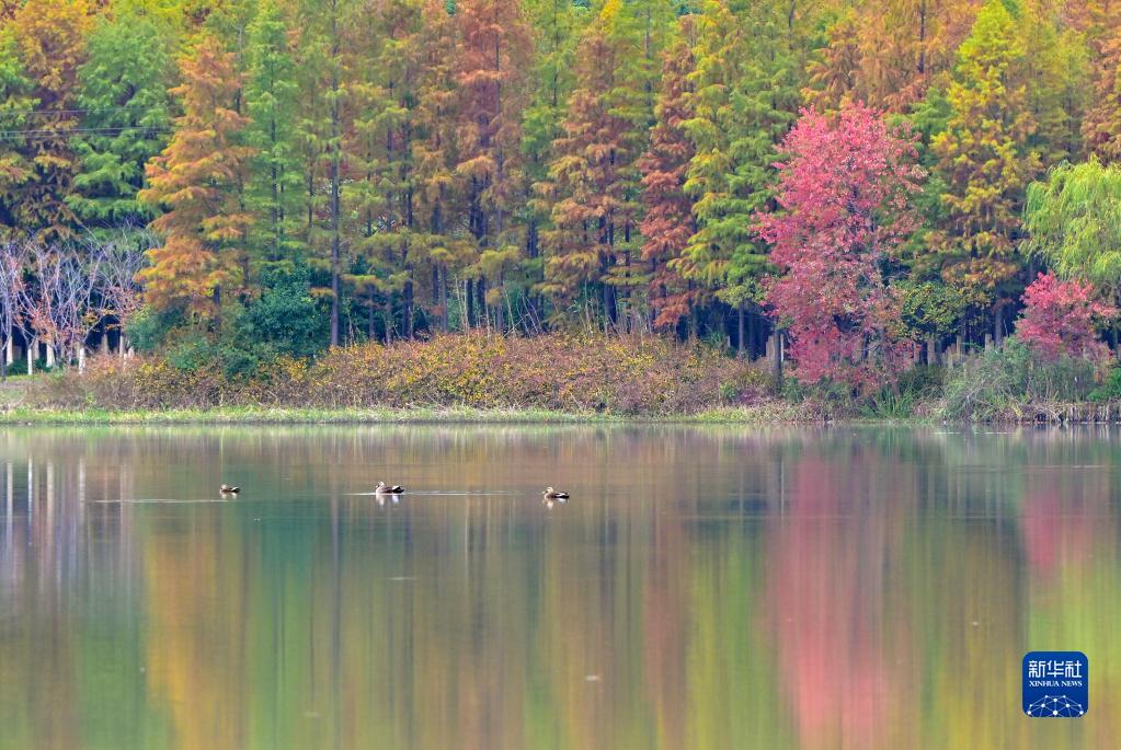 這是11月19日拍攝的江蘇昆山天福國家濕地公園景色。