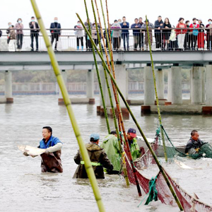當日,浙江省湖州市德清縣下渚湖舉辦冬捕活動(dòng),現場(chǎng)舉行的拉網(wǎng)捕魚(yú)、品嘗魚(yú)宴、“魚(yú)王”競拍等民俗活動(dòng),向游人展示了江南水鄉的傳統魚(yú)文化。