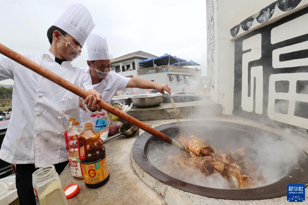 11月19日,廚師在現場(chǎng)烹飪當地特色的魚(yú)湯飯。