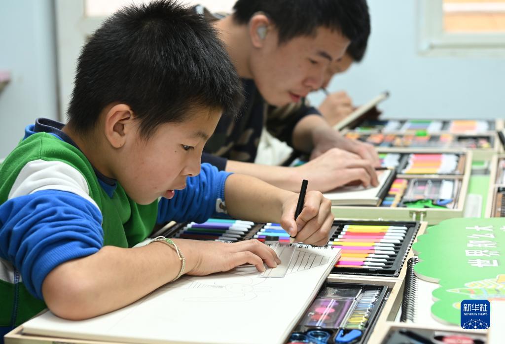 11月20日,在北京市通州區北京妙語(yǔ)語(yǔ)言矯正康復技術(shù)中心,拿到捐贈繪畫(huà)用具的孩子們在畫(huà)畫(huà)。