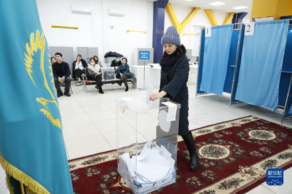11月20日,選民在哈薩克斯坦阿斯塔納一處投票站投票。