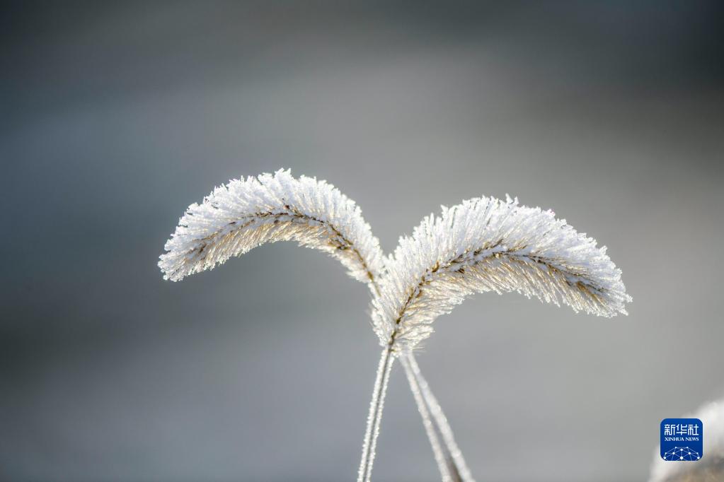 11月17日,在河北省遵化市,狗尾草上結了冰霜。