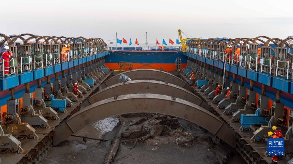 采用世界首創(chuàng )的“弧形梁非接觸文物整體遷移技術(shù)”, 我國迄今水下考古發(fā)現的體量最大的木質(zhì)沉船——長(cháng)江口二號古船21日在長(cháng)江口水域成功實(shí)施整體打撈。隨著(zhù)打撈進(jìn)展有序推進(jìn),21日清晨,長(cháng)江口二號古船船體已局部露出水面,初露真容。