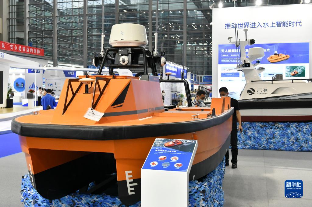 11月24日,觀(guān)眾在海博會(huì )現場(chǎng)了解云洲無(wú)人船。