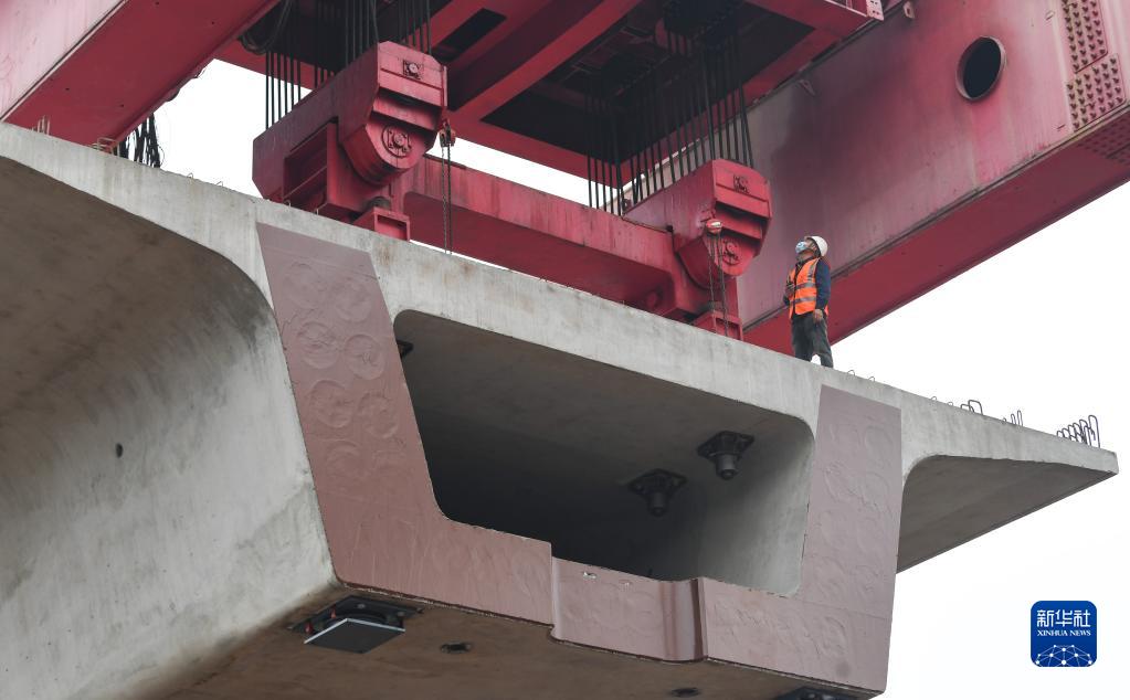 11月24日,在渝昆高鐵瀘宜段架梁施工現場(chǎng),施工人員在進(jìn)行架梁作業(yè)。