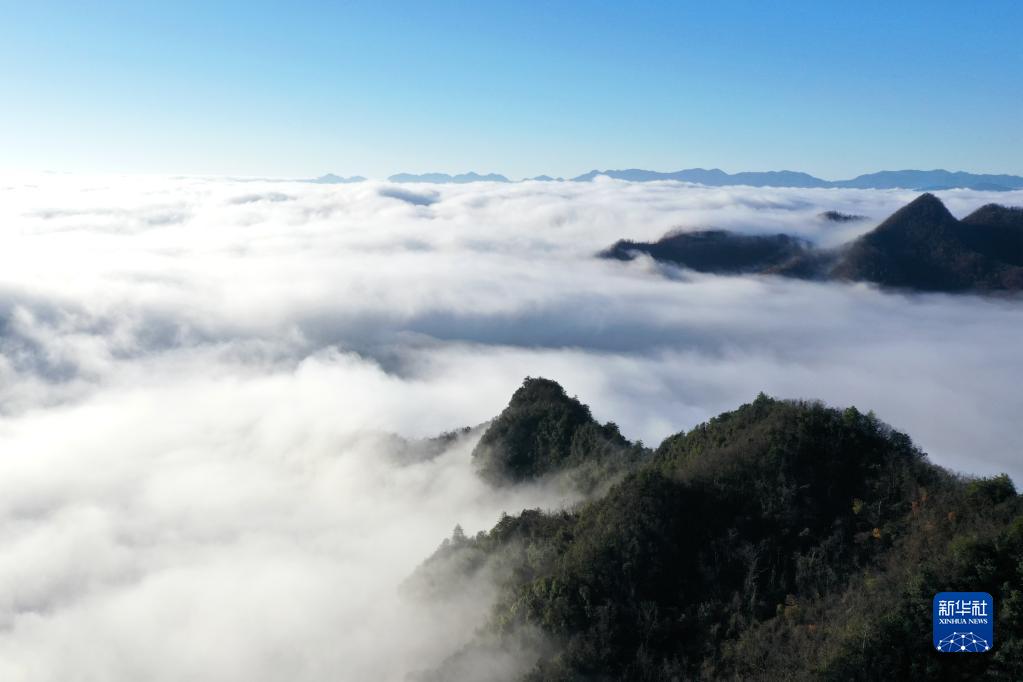 11月24日在湖北省襄陽(yáng)市??悼h馬橋鎮梨花山拍攝的云海(無(wú)人機照片)。