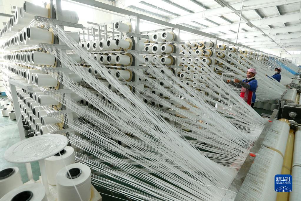 11月24日,青島市即墨區一家篷布生產(chǎn)企業(yè)的工人在織布車(chē)間忙碌。